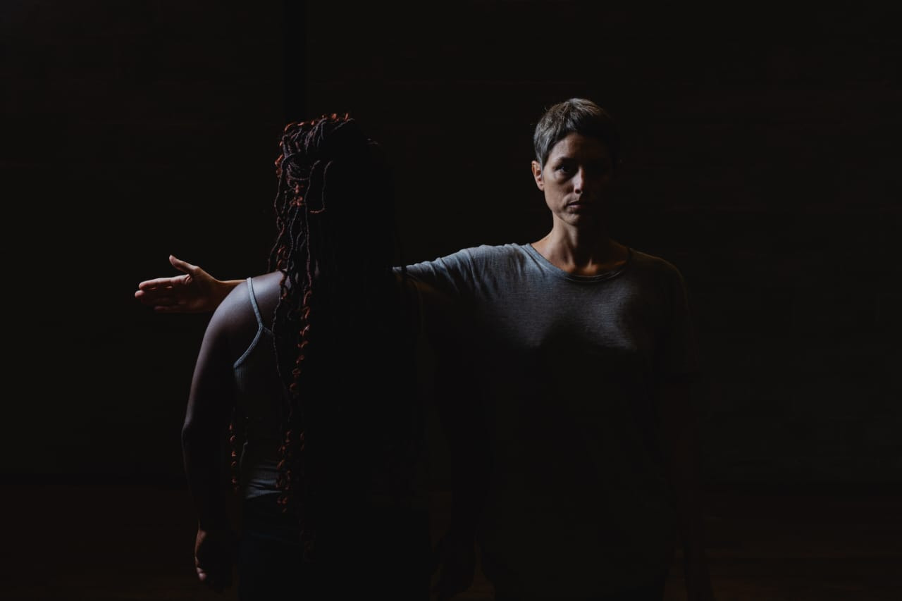O espetáculo “Outra” inicia com duas figuras que dividem o mesmo espaço cênico, transitando entre si como se a própria formação humana estivesse sendo construída ali, diante dos nossos olhos. Há algo de primitivo e, ao mesmo tempo, profundamente simbólico nesse encontro: dois corpos que se aproximam, se estranham e, pouco a pouco, revelam suas fragilidades ao se despirem. Neste gesto, o que vemos não é apenas a retirada de roupas, mas a exposição de uma espécie em descoberta — quase como dois homo sapiens reconhecendo-se pela primeira vez.